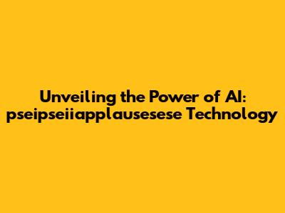 Unveiling The Power Of AI: Pseipseiiapplausesese Technology