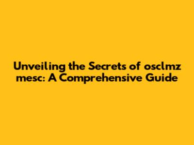 Unveiling The Secrets Of 'osclmz Mesc': A Comprehensive Guide
