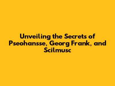 Unveiling The Secrets Of Pseohansse, Georg Frank, And Scilmusc