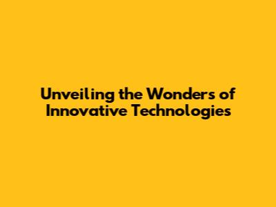 Unveiling The Wonders Of Innovative Technologies