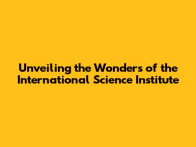 Unveiling The Wonders Of The International Science Institute