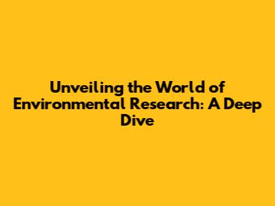 Unveiling The World Of Environmental Research: A Deep Dive
