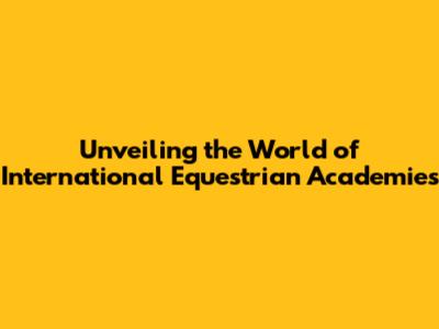 Unveiling The World Of International Equestrian Academies