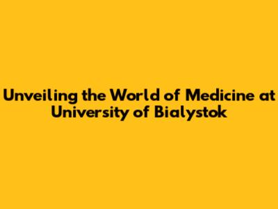 Unveiling The World Of Medicine At University Of Bialystok