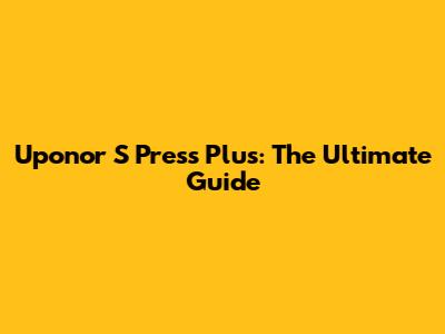 Hey guys! Let's dive into the world of Uponor S Press Plus, a game-changer in plumbing and heating systems. This comprehensive guide will cover everything you need to know, from the basics to advanced techniques. Whether you're a seasoned pro or just starting out, you'll find valuable insights to enhance your understanding and skills.
