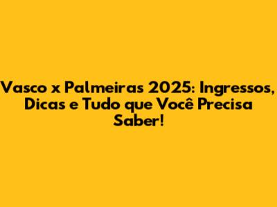 Vasco X Palmeiras 2025: Ingressos, Dicas E Tudo Que Você Precisa Saber!