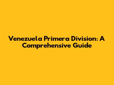 Venezuela Primera Division: A Comprehensive Guide