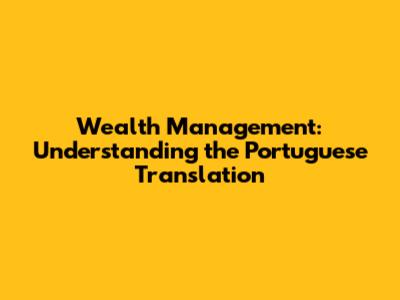 Wealth Management: Understanding The Portuguese Translation