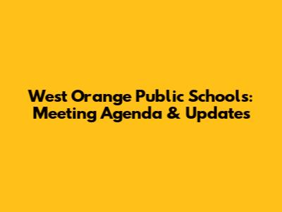 West Orange Public Schools: Meeting Agenda & Updates