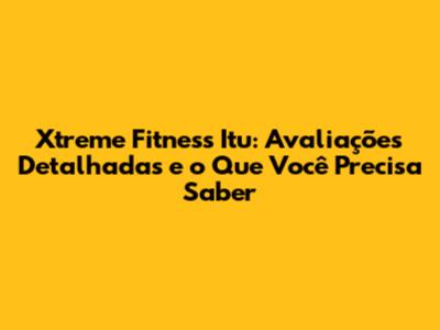 Xtreme Fitness Itu: Avaliações Detalhadas E O Que Você Precisa Saber