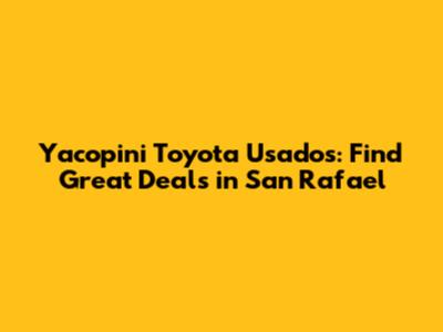 Hey guys! Are you on the hunt for a reliable used Toyota in the San Rafael area? Look no further! Yacopini Toyota Usados is your go-to spot for finding quality pre-owned vehicles that fit your budget and needs. Buying a used car can sometimes feel like navigating a maze, but with Yacopini, you can expect a smooth and transparent experience. Let’s dive into what makes Yacopini Toyota Usados in San Rafael a great choice, covering everything from their inventory and financing options to customer service and why buying used can be a smart move.