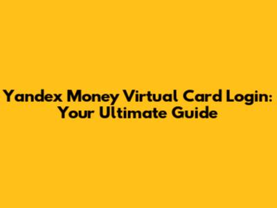 Yandex Money Virtual Card Login: A Complete Guide