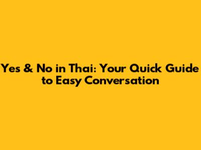 Yes & No In Thai: Your Quick Guide To Easy Conversation