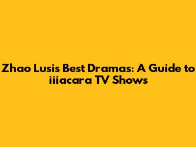 Zhao Lusi's Best Dramas: A Guide To Iiiacara TV Shows