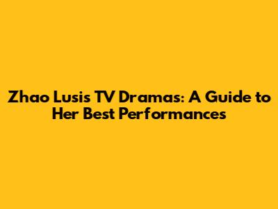 Zhao Lusi's TV Dramas: A Guide To Her Best Performances