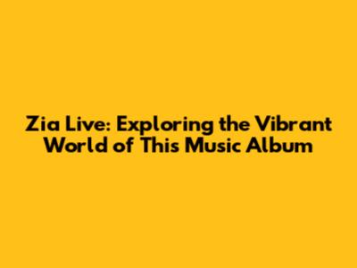 Zia Live: Exploring The Vibrant World Of This Music Album