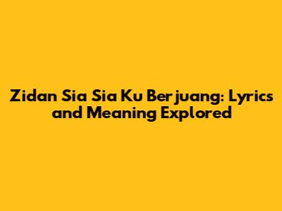 Zidan Sia Sia Ku Berjuang: Lyrics & Meaning Explored